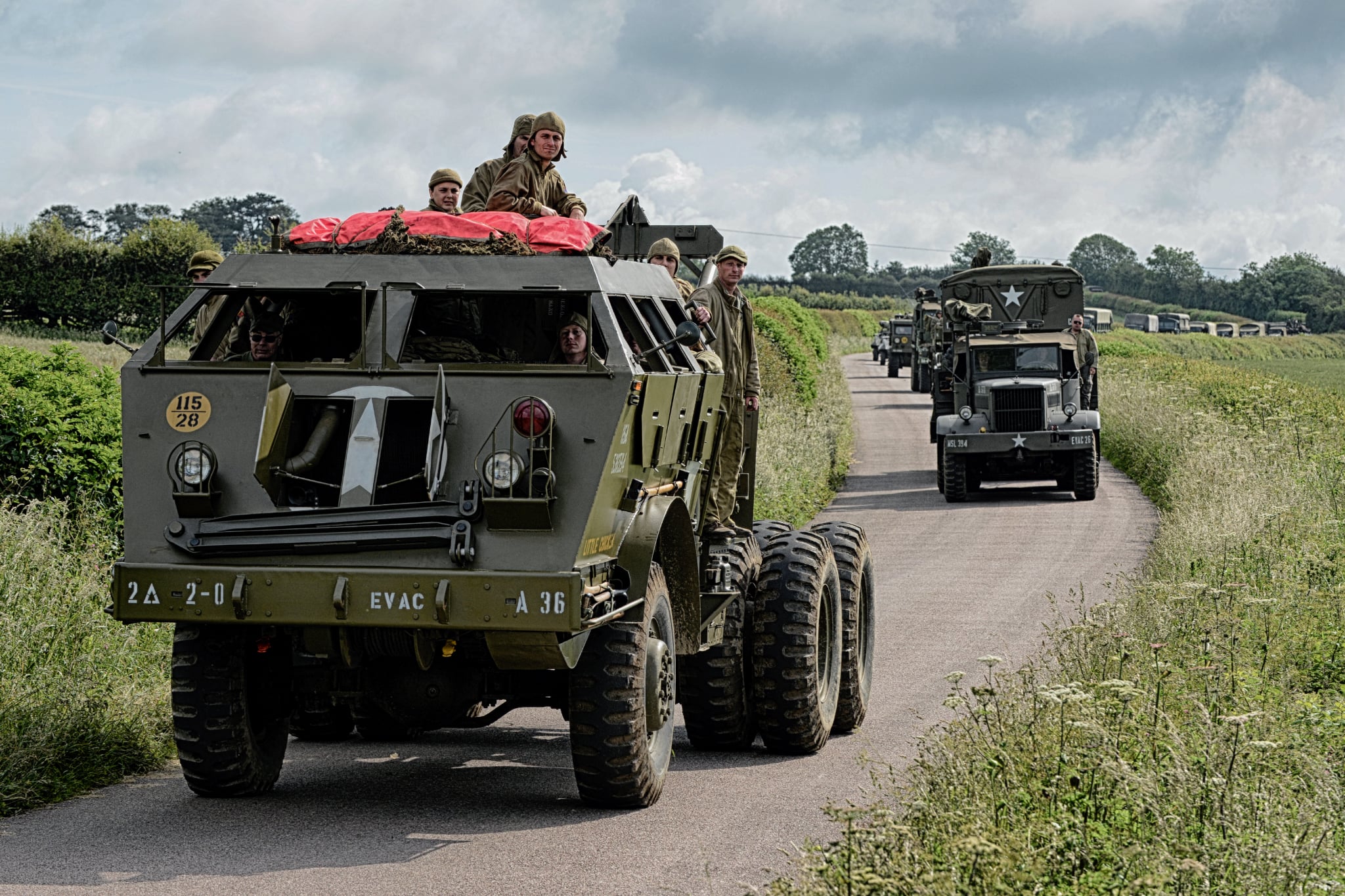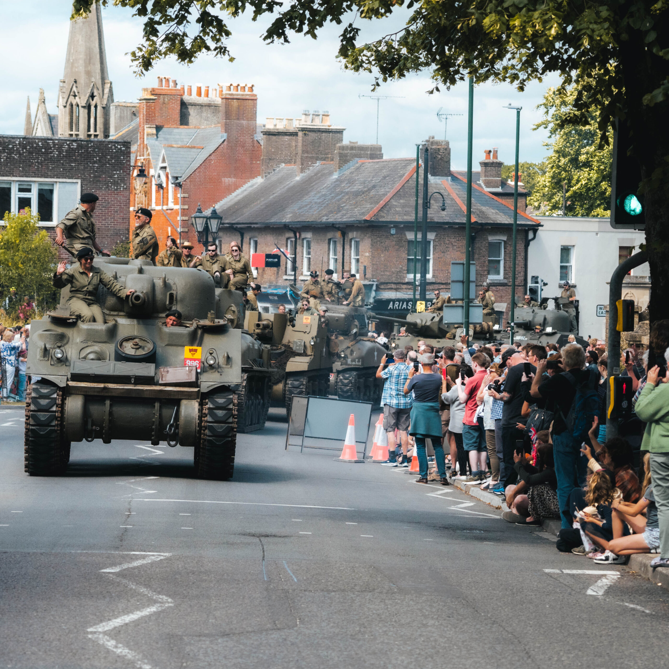 Armour & Embarkation began in 2010, started by Jack Beckett and Jim Clark who thought, instead of parking tanks in a field for a weekend, why don’t we take them on the road, and replicate the build up to D-Day here in the Dorchester area. With massive help from Dorset Police, Dorchester Council and friends, this unprecedented event actually became possible! Base camp was situated above Maiden Newton, with the convoy leading through the village to Dorchester town to head up the town’s carnival. It was supposed to be a one off….